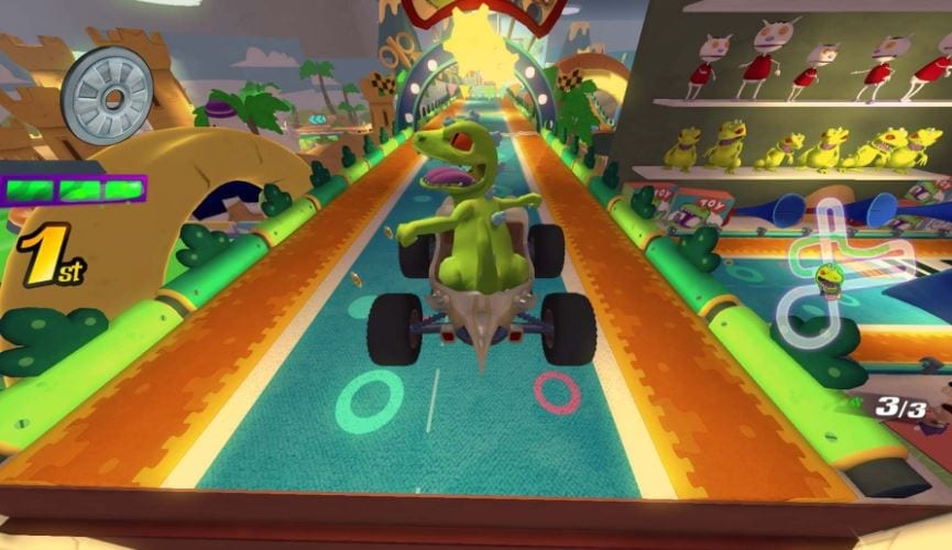 Shots of the gameplay show it’s definitely lacking the smoothness and beauty of a refined game like Mario Kart, but do we really need to repeat the selling point of the game – YOU CAN PLAY AS TOMMY PICKLES!