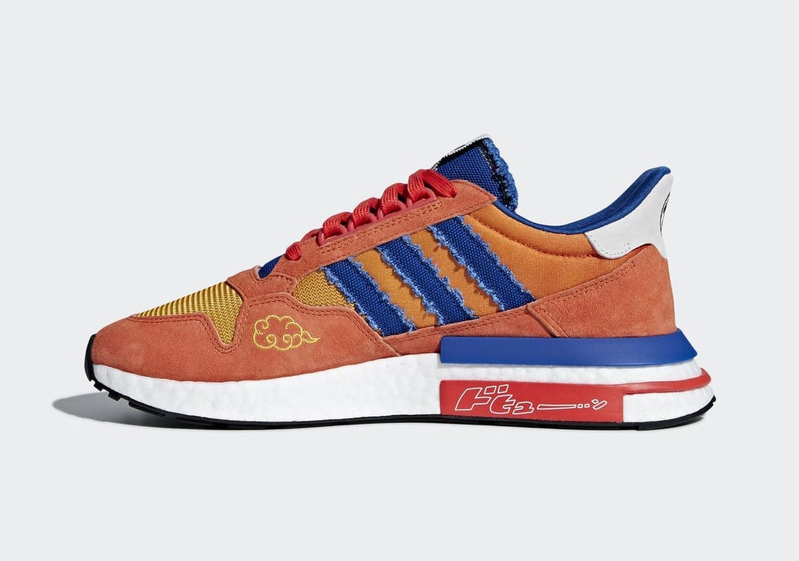 Son Goku’s adidas will be the ZX500 RM trainer, and will feature Goku’s iconic orange and blue colours.