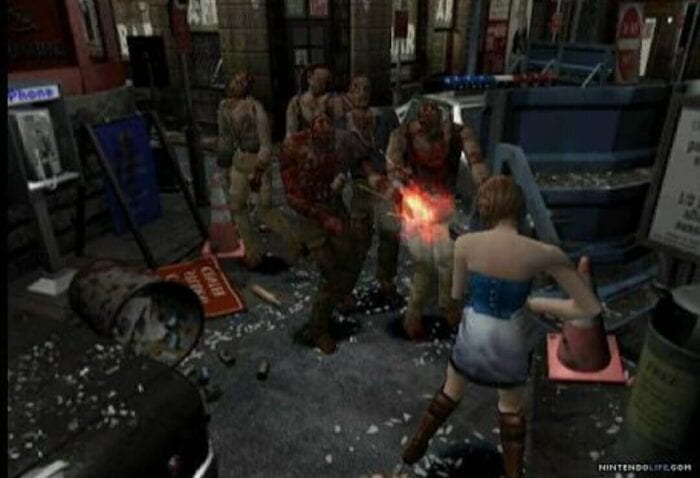 The game’s original 1999 description reads as follows: “Jill Valentine resigns from S.T.A.R.S. and vows to leave Raccoon City. She suddenly finds herself trapped by hordes of flesh eating zombies, hideous mutants, and a relentless new Nemesis.”