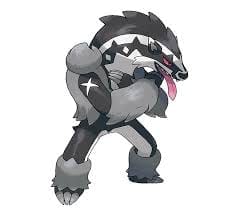 Obstagoon is of the Dark/Normal type, with skills including Recklessness / Guts. It’s the final evolution of Zigzagoon, who next transforms into Linoone.