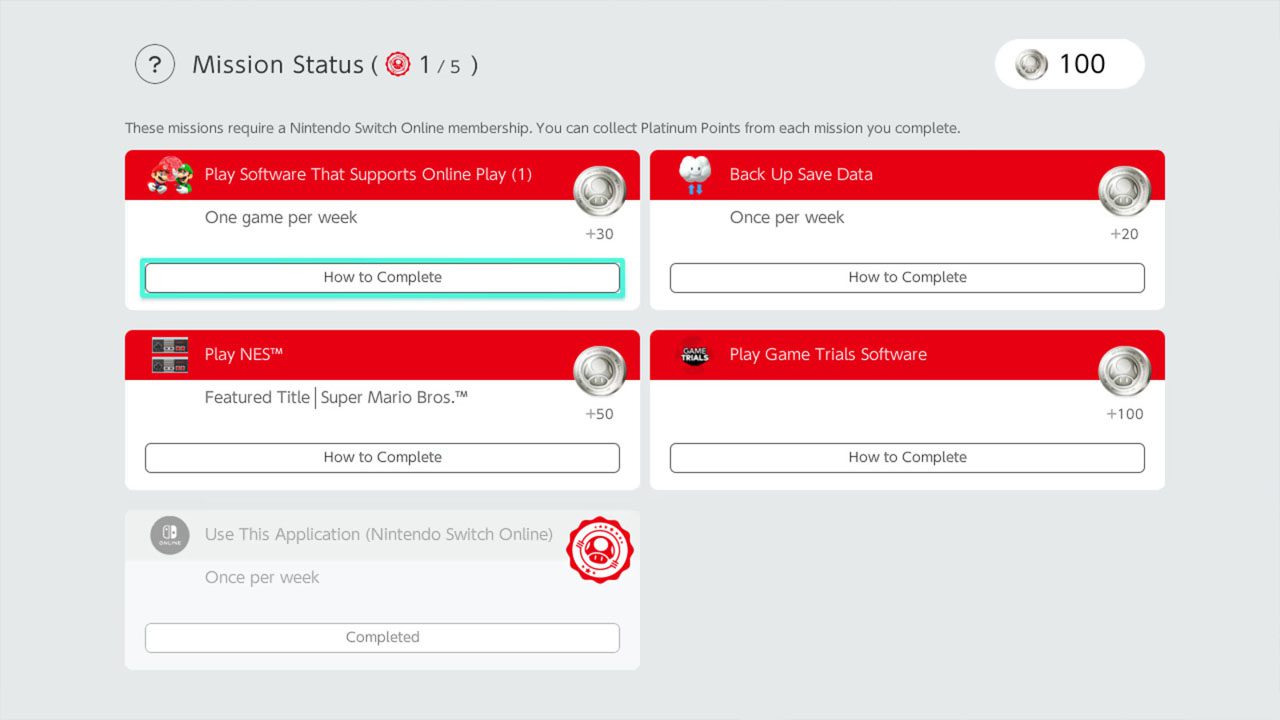 Missions do not sound that complicated either. Right now, there are tasks like playing a game that has online features, or playing a NES game from the Nintendo Switch Online collection. And just playing a game a week will get players 30 Platinum Points.