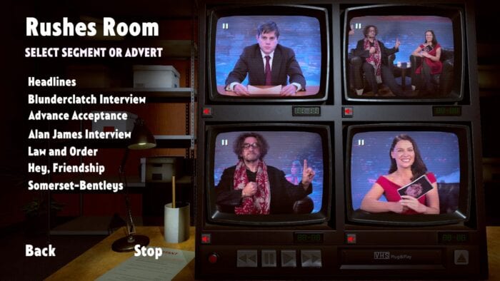 Not For Broadcast’s official description reads: “In an alternate 1980s where the nation stumbles towards dystopia, join the National Nightly News team as they document the latest political scandal, the rise of a radical government, and which celebrity has for some reason written a book about it all.”