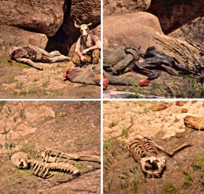 Posting on Reddit’s r/reddeadredemption sub, a user named Johnny_GazeeboIII shared the following image, along with the caption: “Just an example of NPC corpses going through the stages of decomposition. I came back a while later and saw that a few of the corpses had turned to skeletons.”