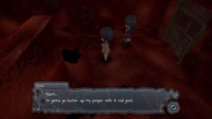 The first few chapters ease you in quite slowly, with me thinking “wow, this is much easier than the first Corpse Party.” Then I hit Chapter 4 and immediately choked on my own words. There are sections of this game where you’re constantly followed by enemies, and it can border on irritating at times.