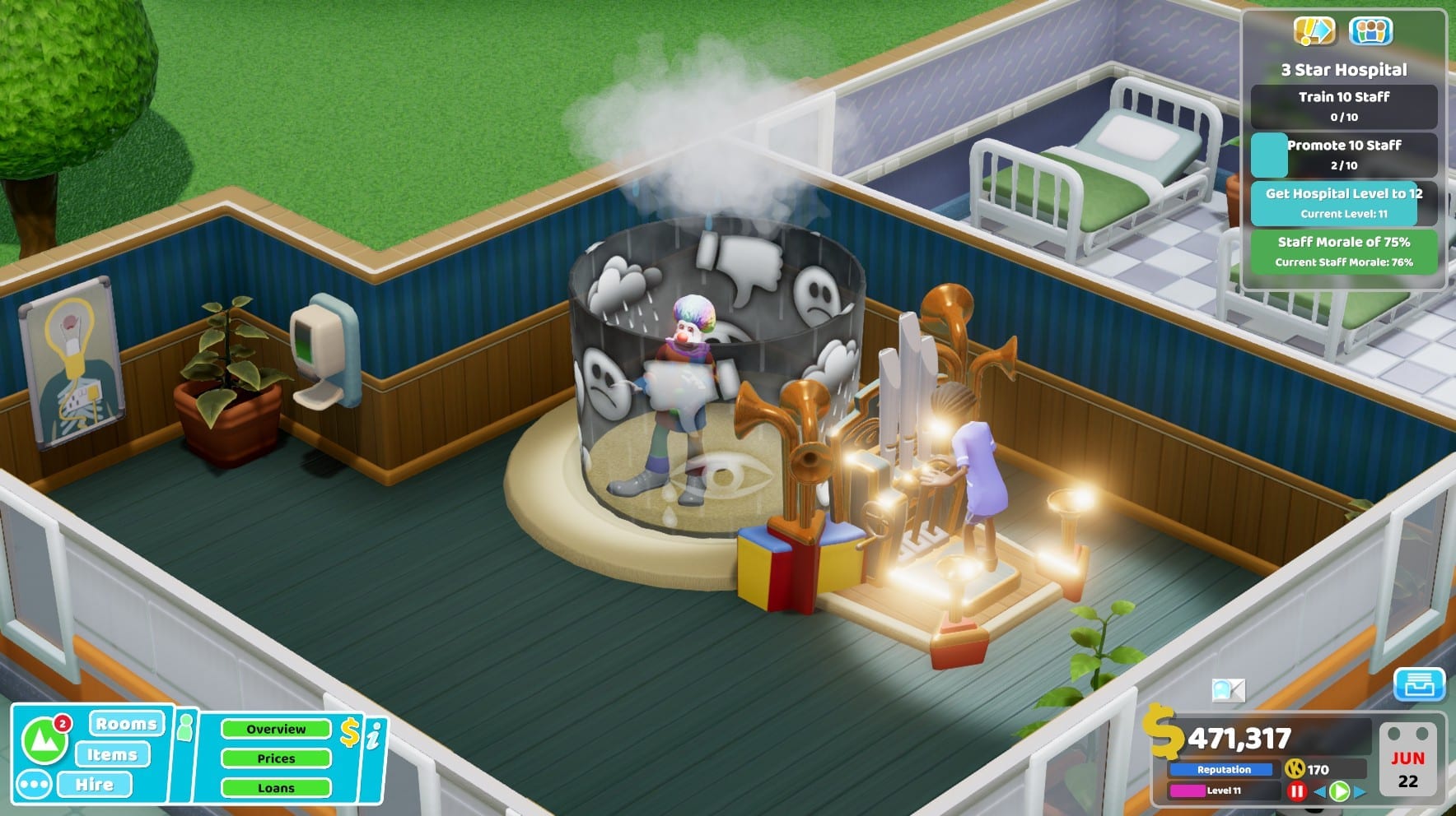 Your aim is to raise funds and the hospitals reputation. Something that gets reviewed every year, and some awards are up for grabs for hospitals that are run particularly well. There are even some of the less glamorous aspects of hospital life included, such as health and safety inspections.