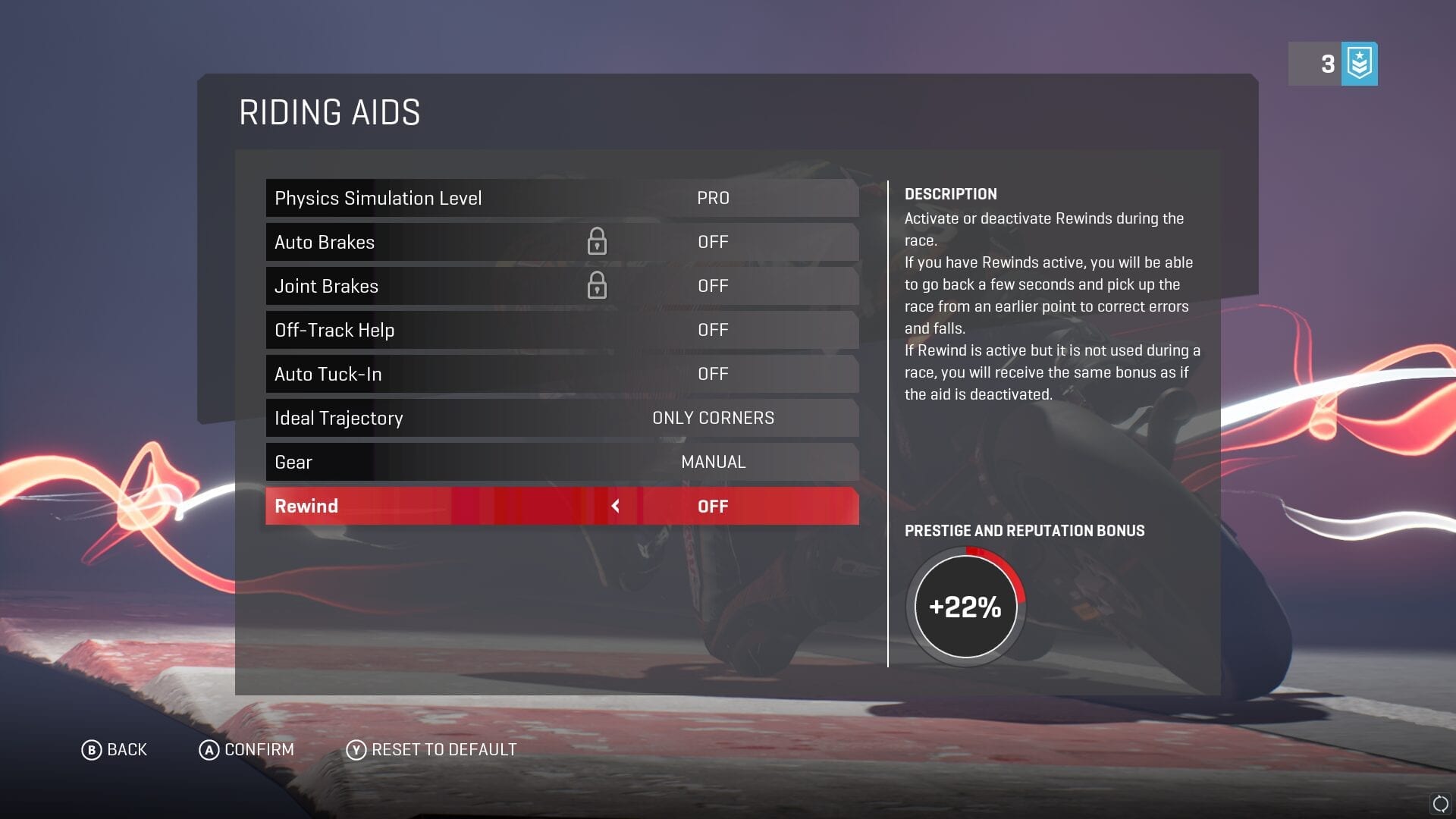 Almost every aspect of the riding can be customised, with different levels of AI assistance and differences in behaviour. Even the way the rider leans into curves can be altered, with half a dozen different styles.
