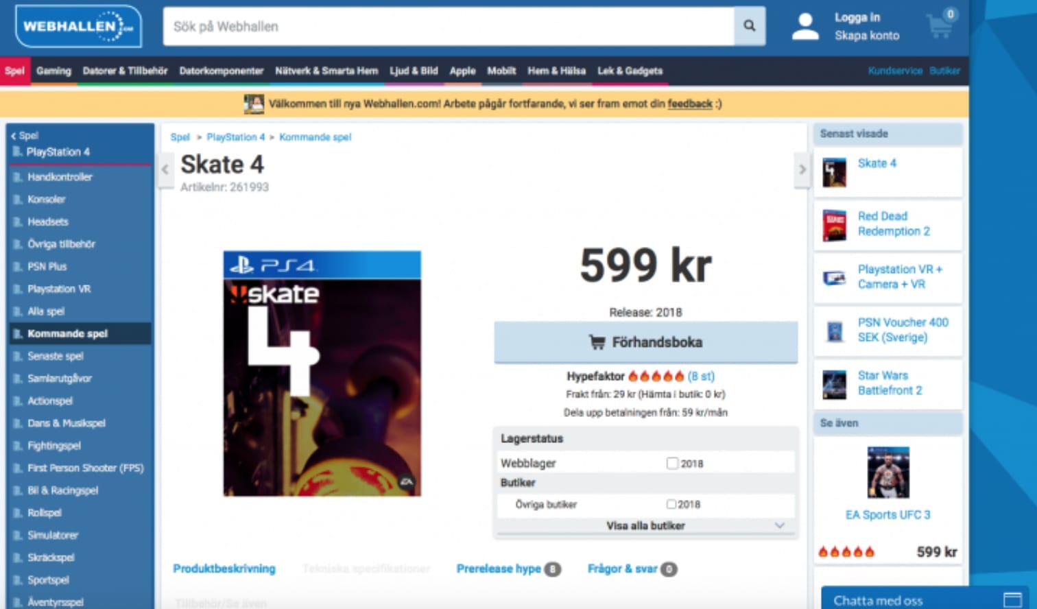 One of the biggest hints that has come about around the potential release of Skate 4 is that it has been listed on a Swedish retailers website seen below.