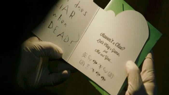If you’ve been struggling to wrap your head around the card from The Riddler which includes some sort of coded message, don’t worry, as a number of Twitter users have already cracked it.