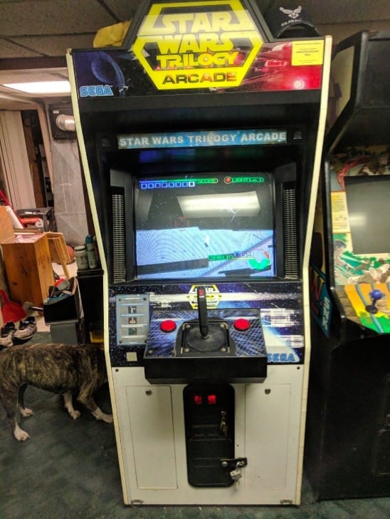 This is the STAR WARS TRILOGY STAND UP VERSION ARCADE GAME BY SEGA, but unfortunately it doesn’t include the dog.