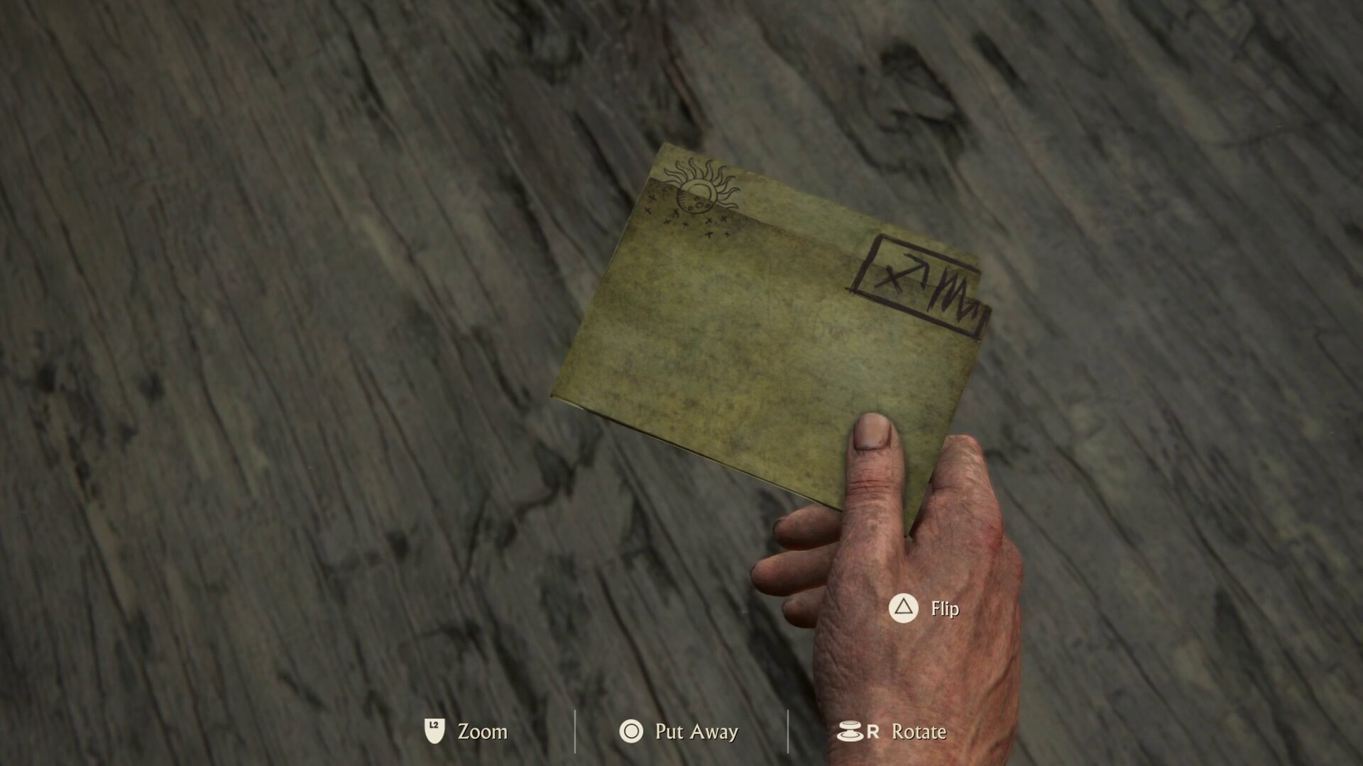 To solve the puzzle, you need to pull out an old letter that was handed to us earlier. Follow the on-screen instructions to flip the letter several times before folding it to reveal a new clue. Both the sun and moon symbols will now align to show you two new symbols: Sagittarius and Scorpio.