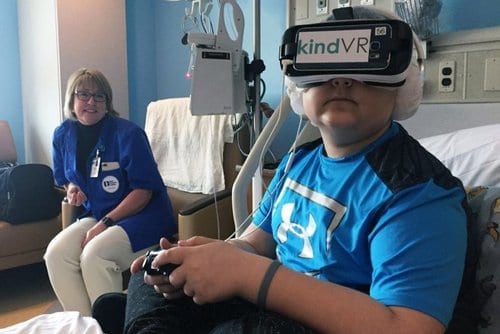 It’s actually not as outrageous as it sounds at first glance. Visiting the dentist or an ER usually comes with a significant amount of stress, fear and pain. Correctly used, VR can distract from that quite a bit. While it doesn’t numb the physical pain at all, the mere fact that it distracts the wearer of the headset from what is happening to them significantly improves their pain tolerance.