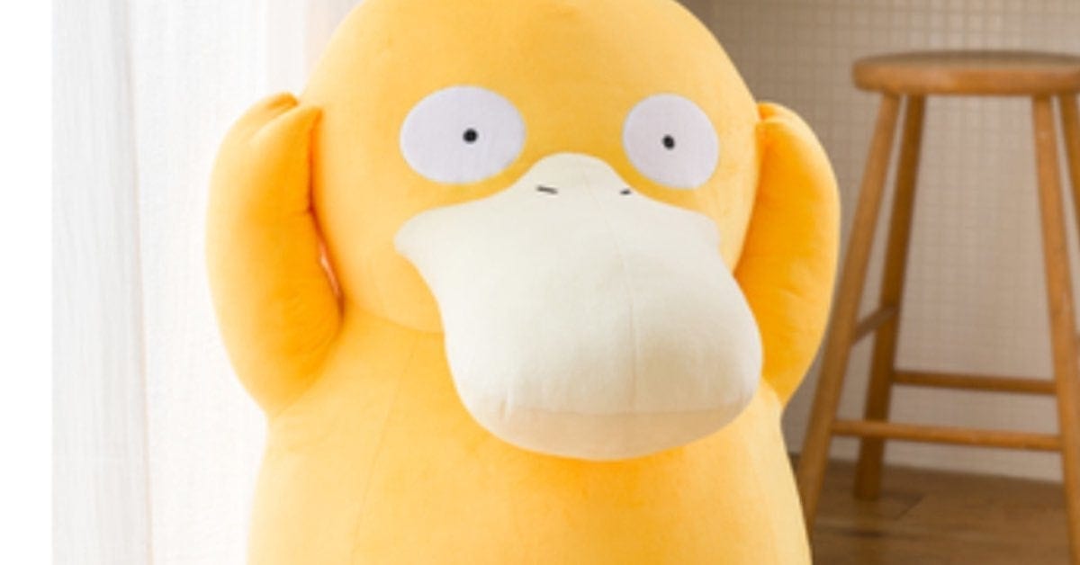 Psyduck’s official description reads: “Ready to add some charming confusion to your living room, collection display, or workspace? Clutching its head in perpetual perplexity, this Psyduck Poké Plush features a jumbo 31-inch height based on the in-game Pokédex. Send it into a pretend Pokémon battle, or pose it somewhere within sight so it can keep you smiling!”